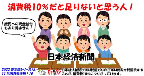日本経済新聞は、何の問題もない日本の財政を問題視し国民を委縮させ、消費税を10%に増税、庶民への再配分を低下させ、ボトムアップ日本の国力を弱めてきた。2022/12/8付では「コロナ給付金、自治体3割ばらまき」との日本経済新聞の記事が出た。国の新型コ…