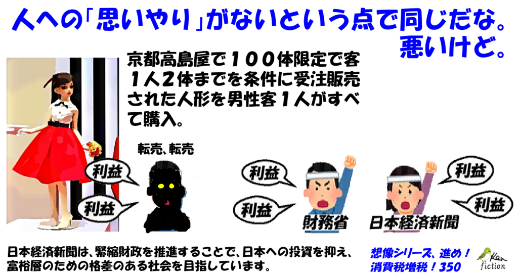 2018-04-22 あんた!富裕層のことばっか考えてない? 〇消費税増税を推進する日本経済新聞を批判する漫画を描いてpixivに掲載しています(想像も入っています)。よろしければご覧ください。 〇なお、問題等のある場合には、お手数ですが、コメント欄に記載願います。速やかに削除、修正等の対応を行います。 以上/ご覧いただきありがとうございました。